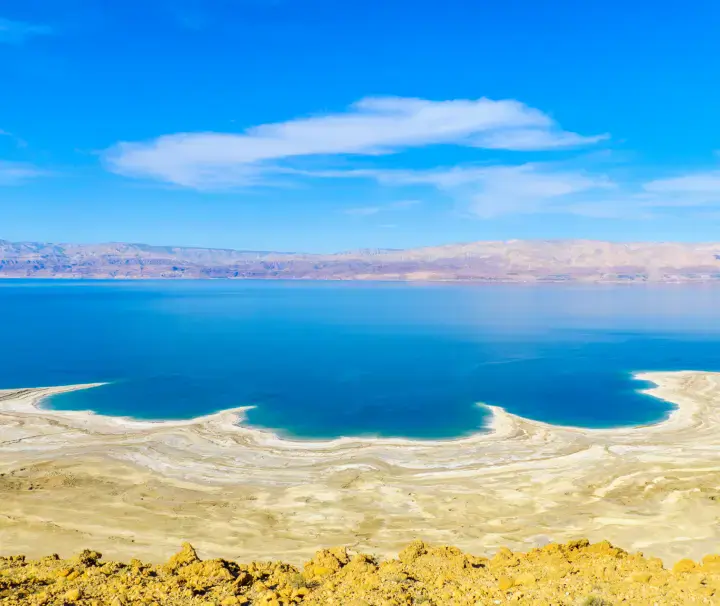 Après le petit déjeuner, départ d’Aqaba en direction de la Mer Morte, point le plus bas de la planète à 417 mètres sous le niveau de la mer. Ce lac salé unique offre une expérience étonnante : on y flotte sans effort, dans un décor minéral apaisant.